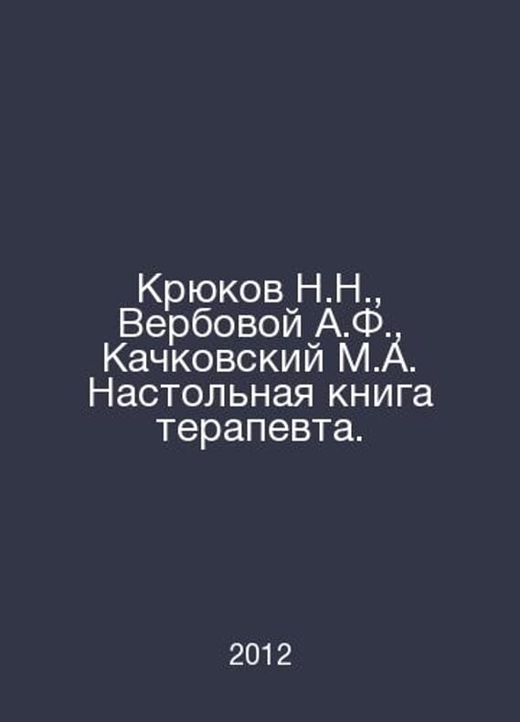 Kryukov N.N., Verbovoy A.F., Kachkovsky M.A. Therapists Table Book. In Russian /Kryukov N.N., Verbovoy A.F., Kachkovskiy M.A. Nastolnaya kniga terapevta. Diagnostic guide for daily use. M. Astrel 2012.. Contact us for details or to request photos of available books. SKUalb4f9ebaa4d2f98f81.
