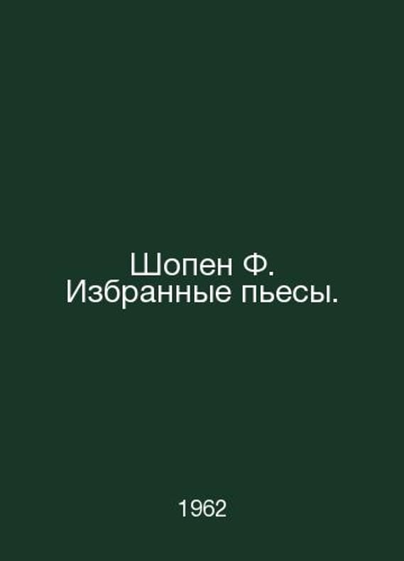 Chopin F. Selected plays. In Russian /Shopen F. Izbrannye pesy. For Piano M Music 1962. Contact us for details or to request photos of available books. Delivery of this book could take longer than normal due to additional handling time before shipping, and no rush delivery options are available. Please let us know if you have a specific date by which you need to receive your order.SKUalb4ff0d6f0939d1116
