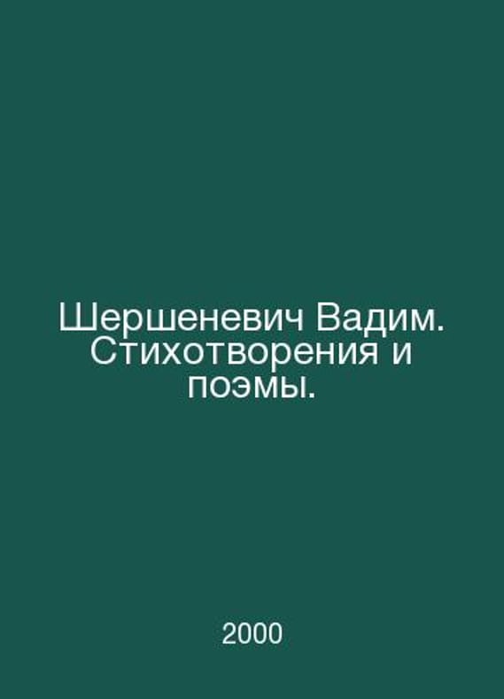 Shershenevich Vadim. Poems and Poems. In Russian /Shershenevich Vadim. Stikhotvoreniya i poemy. The collection of A.A. Kobrinsky. Series: New Poet Library. Small Series. St. Petersburg, Academic Project, 2000. Contact us for details or to request photos of available books. Delivery of this book could take longer than normal due to additional handling time before shipping, and no rush delivery options are available. Please let us know if you have a specific date by which you need to receive your order. SKUalb504663fac77daea8