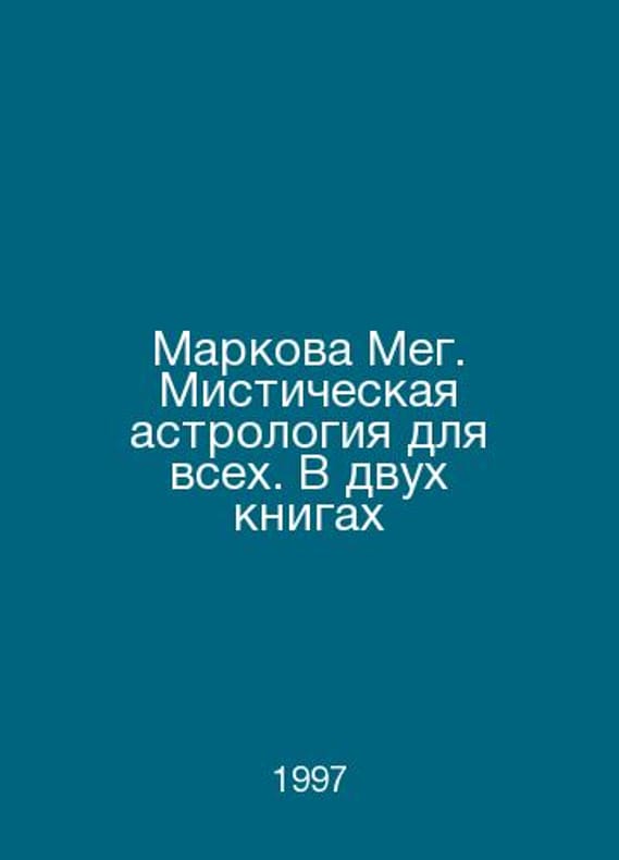 Markova Meg. Mystic Astrology for All. In Two Books In Russian /Markova Meg. Misticheskaya astrologiya dlya vsekh. V dvukh knigakh The Adam and Eve M Centropolygraph series 1997. Contact us for details or to request photos of available books. Delivery of this book could take longer than normal due to additional handling time before shipping, and no rush delivery options are available. Please let us know if you have a specific date by which you need to receive your order. SKUalb504dac5c99ecb4d7