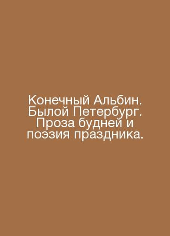 Ultimate Albin. Former St. Petersburg. The prose of everyday life and the poetry of the holiday. In Russian /Konechnyy Albin. Byloy Peterburg. Proza budney i poeziya prazdnika. Series: Culture of Everyday Life. M. The New Literary Review of 2021. 672c.Contact us for details or to request photos of available books. Delivery of this book could take longer than normal due to additional handling time before shipping, and no rush delivery options are available. Please let us know if you have a specific date by which you need to receive your order.SKUalb50993ccf6d8f27e5