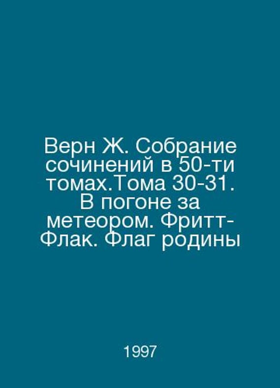 Verne J. A collection of works in 50 volumes. Volumes 30-31. In Pursuit of a Meteor. Fritt-Flack. The Flag of the Motherland In Russian /Vern Zh. Sobranie sochineniy v 50-ti tomakh.Toma 30-31. V pogone za meteorom. Fritt-Flak. Flag rodiny In pursuit of a meteor. The flag of M. Freds homeland is 1997.Contact us for details or to request photos of available books. Delivery of this book could take longer than normal due to additional handling time before shipping, and no rush delivery options are available. Please let us know if you have a specific date by which you need to receive your order.SKUalb50b9c8538a73b04e