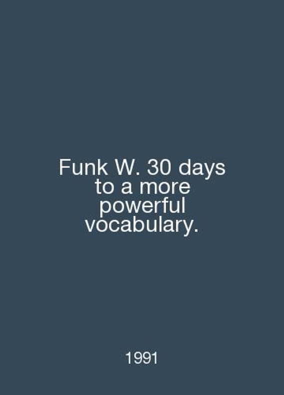 Funk W. 30 days to a more powerful vocabulary. In English /Funk W. 30 days to a more powerful vocabulary. Moscow 1991.. Contact us for details or to request photos of available books. SKUalb50e1d36e82fa67df.
