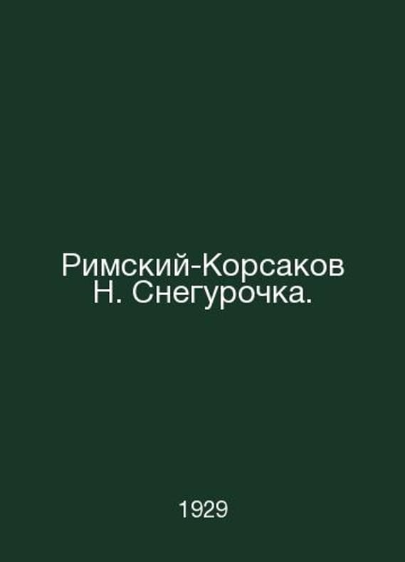Rimsky-Korsakov N. Snow Maiden. In Russian /Rimskiy-Korsakov N. Snegurochka. Opera in 4 Acts. A series of opera librettos edited by L. M. Obolensky, Publishing House of Tekino Print. 1929. Contact us for details or to request photos of available books. Delivery of this book could take longer than normal due to additional handling time before shipping, and no rush delivery options are available. Please let us know if you have a specific date by which you need to receive your order.SKUalb520d905c51d7b393