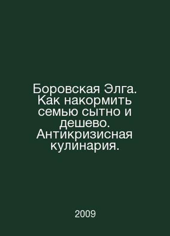 Borovskaya Elga. How to feed a family heartily and cheaply In Russian /Borovskaya Elga. Kak nakormit semyu sytno i deshevo. Antikrizisnaya kulinariya. Series: Culinary Art. Executive Editor E.Levasheva. Moscow. Exmo. 2009 year.. Contact us for details or to request photos of available books. SKUalb528396a442f9a71c.