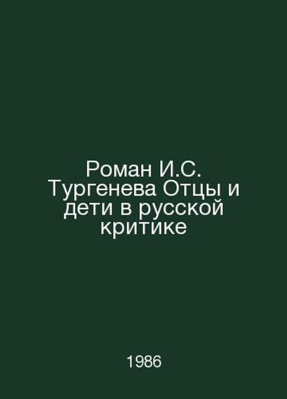 Novel by I.S. Turgenev Fathers and Children in Russian Criticism In Russian /Roman I.S. Turgeneva Ottsy i deti v russkoy kritike L LGU 1986. Contact us for details or to request photos of available books. Delivery of this book could take longer than normal due to additional handling time before shipping, and no rush delivery options are available. Please let us know if you have a specific date by which you need to receive your order. SKUalb5326837abf250dcb