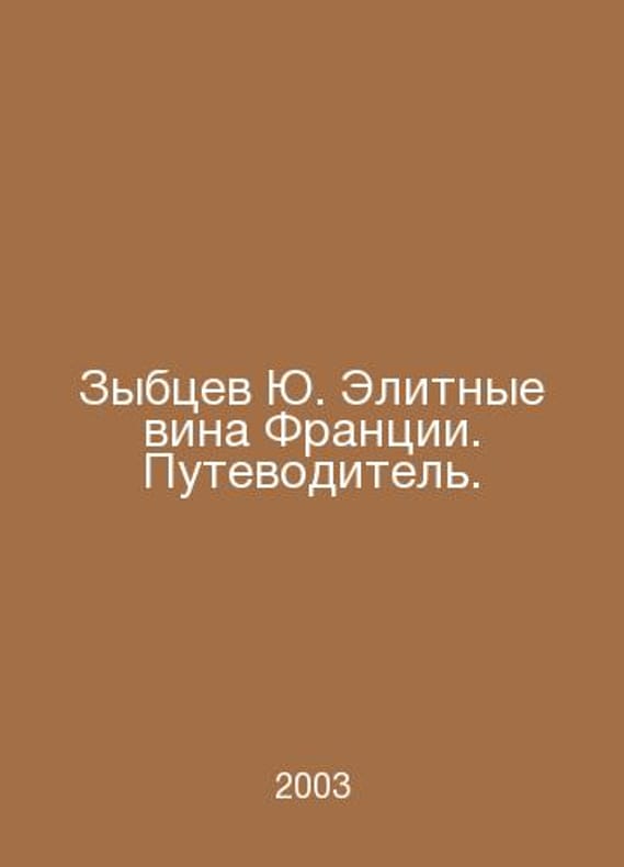 Zybtsev Yu. Elite wines of France. A guide. In Russian /Zybtsev Yu. Elitnye vina Frantsii. Putevoditel. Series: Wine Treasures. M. Zhigulsky Publishing House. 2003.. Contact us for details or to request photos of available books. SKUalb5423fcb20220a55f.