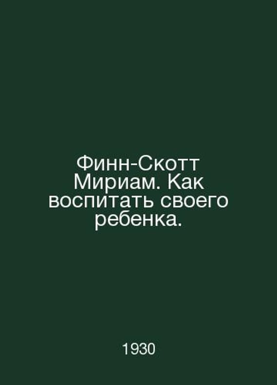 Miriam Finn-Scott: How to raise your child. In Russian /Finn-Skott Miriam. Kak vospitat svoego rebenka. L.A. Finn M. Educator 1930.Contact us for details or to request photos of available books. Delivery of this book could take longer than normal due to additional handling time before shipping, and no rush delivery options are available. Please let us know if you have a specific date by which you need to receive your order.SKUalb550f2d48f11b5412
