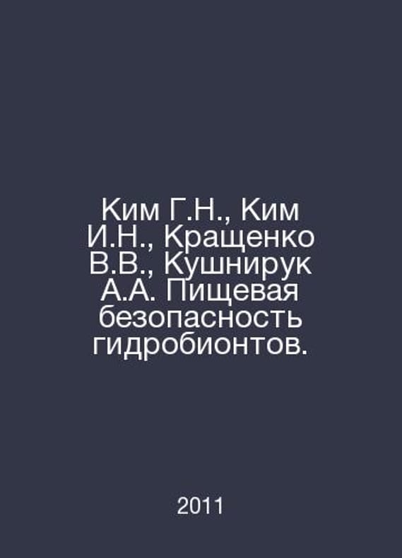 Kim G.N., Kim I.N., Krashchenko V.V., Kushniruk A.A. Food safety of hydrobionts. In Russian /Kim G.N., Kim I.N., Krashchenko V.V., Kushniruk A.A. Pishchevaya bezopasnost gidrobiontov. Textbook. M. Morbook. 2011.. Contact us for details or to request photos of available books. SKUalb55d0821c91e63e4c.