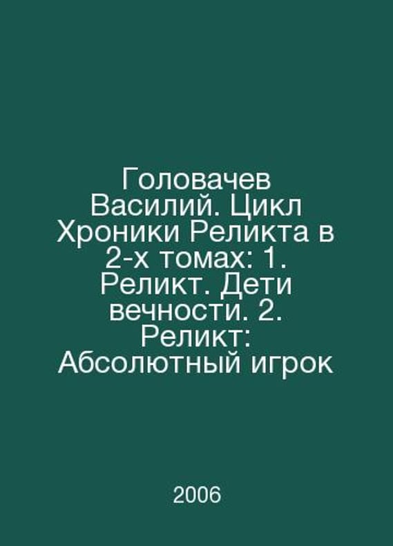 Vasily Golovachev: The Relic Chronicle Cycle in 2 Volumes: 1. Relic. Children of Eternity. 2. Relic: The Absolute Player In Russian /Golovachev Vasiliy. Tsikl Khroniki Relikta v 2-kh tomakh: 1. Relikt. Deti vechnosti. 2. Relikt: Absolyutnyy igrok Series: The Founding Fathers. The Russian Space by M. Eksmo 2006. Contact us for details or to request photos of available books. Delivery of this book could take longer than normal due to additional handling time before shipping, and no rush delivery options are available. Please let us know if you have a specific date by which you need to receive your order.SKUalb561cada13edeb8a1