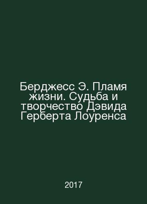 Burgess E. Flame of Life: The Fate and Creativity of David Herbert Lawrence In Russian /Berdzhess E. Plamya zhizni. Sudba i tvorchestvo Devida Gerberta Lourensa Art biography. Translated from English, note by A. Nikolaevskaya: edited by N. Paltseva, G. Cheredov: design by T. Kosterina Moscow Rudomino Book Center 2017. Contact us for details or to request photos of available books. Delivery of this book could take longer than normal due to additional handling time before shipping, and no rush delivery options are available. Please let us know if you have a specific date by which you need to receive your order. SKUalb564655dbbad8b9c0