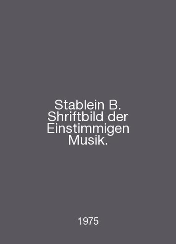 Stablein B. Shriftbild der Einstimmigen Musik. In English /Stablein B. Shriftbild der Einstimmigen Musik. Musikgesichte in Bildern.Band III: Musik des Mittelalters und der Renaissance e.Lfg.4 Leipzig VEB Deutsher Verlag fur Musik 1975. Contact us for details or to request photos of available books. Delivery of this book could take longer than normal due to additional handling time before shipping, and no rush delivery options are available. Please let us know if you have a specific date by which you need to receive your order.SKUalb578af8434303ce2f