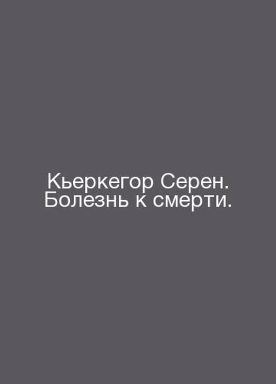 Kierkegaard Seren. Disease to Death. In Russian /Kerkegor Seren. Bolezn k smerti. Series: Philosophical Technologies M. Academic Project 2012.Contact us for details or to request photos of available books. Delivery of this book could take longer than normal due to additional handling time before shipping, and no rush delivery options are available. Please let us know if you have a specific date by which you need to receive your order.SKUalb19bb672a70c7c211