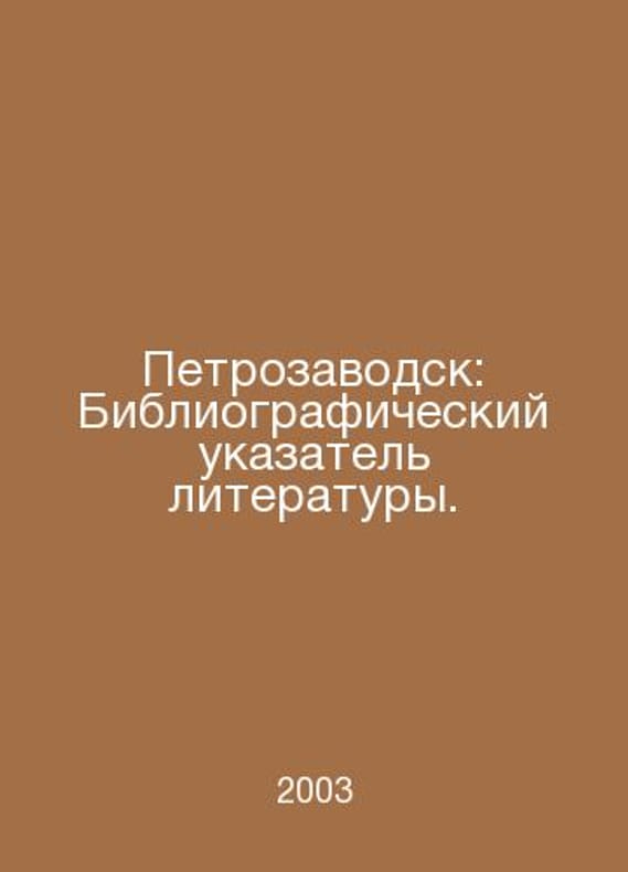 Petrozavodsk: Bibliographic Index of Literature. In Russian /Petrozavodsk: Bibliograficheskiy ukazatel literatury. Petrozavodsk 2003.. Contact us for details or to request photos of available books. SKUalb580bcbdb3f77827b.