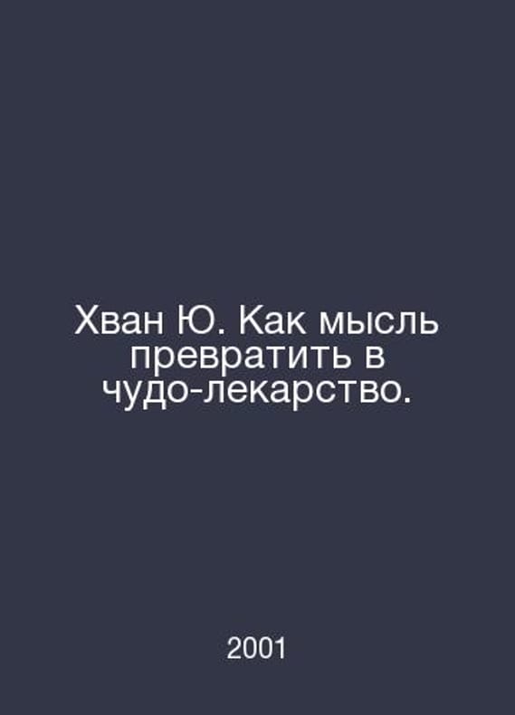 Hwang Yu. How to turn the idea into a miracle cure. In Russian /Khvan Yu. Kak mysl prevratit v chudo-lekarstvo. SPb 2001. Contact us for details or to request photos of available books. Delivery of this book could take longer than normal due to additional handling time before shipping, and no rush delivery options are available. Please let us know if you have a specific date by which you need to receive your order. SKUalb5842b4a39d3d8b47