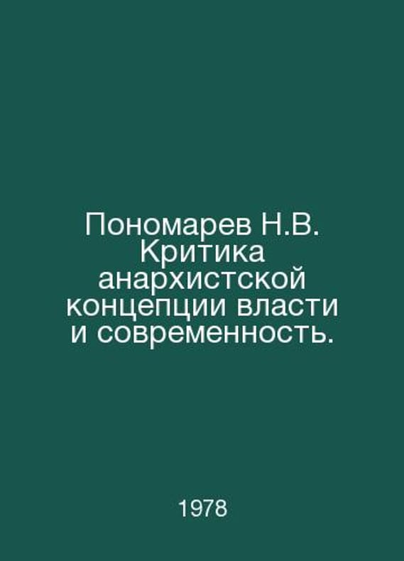 N.V. Ponomarev Criticism of the Anarchist Concept of Power and Modernity. In Russian /Ponomarev N.V. Kritika anarkhistskoy kontseptsii vlasti i sovremennost. Kazan edition of Kazan University 1978.Contact us for details or to request photos of available books. Delivery of this book could take longer than normal due to additional handling time before shipping, and no rush delivery options are available. Please let us know if you have a specific date by which you need to receive your order.SKUalb5885a07a830f6bfe