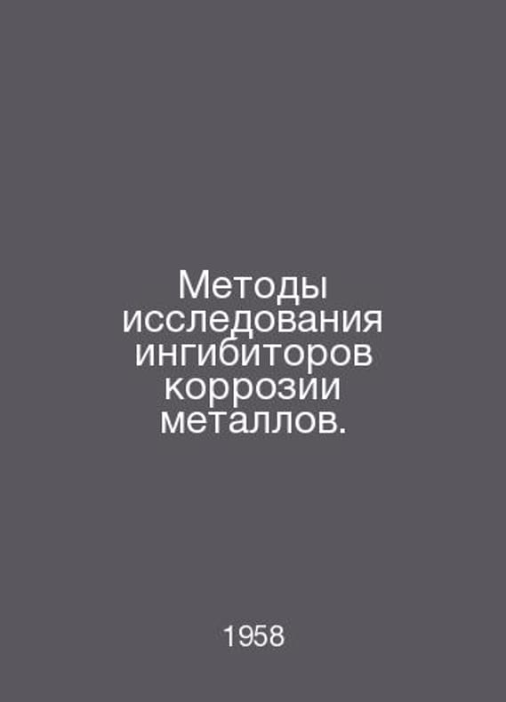 Methods of investigation of metal corrosion inhibitors. In Russian /Metody issledovaniya ingibitorov korrozii metallov. Sbornik # 7. Ed. Balezin S.A. M. Profisdat 1958. Contact us for details or to request photos of available books. Delivery of this book could take longer than normal due to additional handling time before shipping, and no rush delivery options are available. Please let us know if you have a specific date by which you need to receive your order.SKUalb597e74bad96129f0