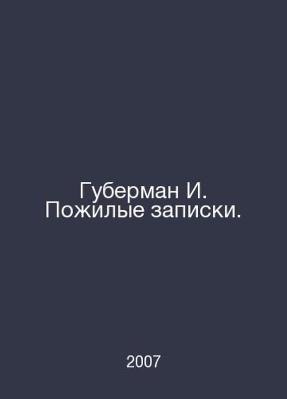 Huberman I. Older notes. In Russian /Guberman I. Pozhilye zapiski. M expo 2007.Contact us for details or to request photos of available books. Delivery of this book could take longer than normal due to additional handling time before shipping, and no rush delivery options are available. Please let us know if you have a specific date by which you need to receive your order.SKUalb59ace0ffaf96af7f