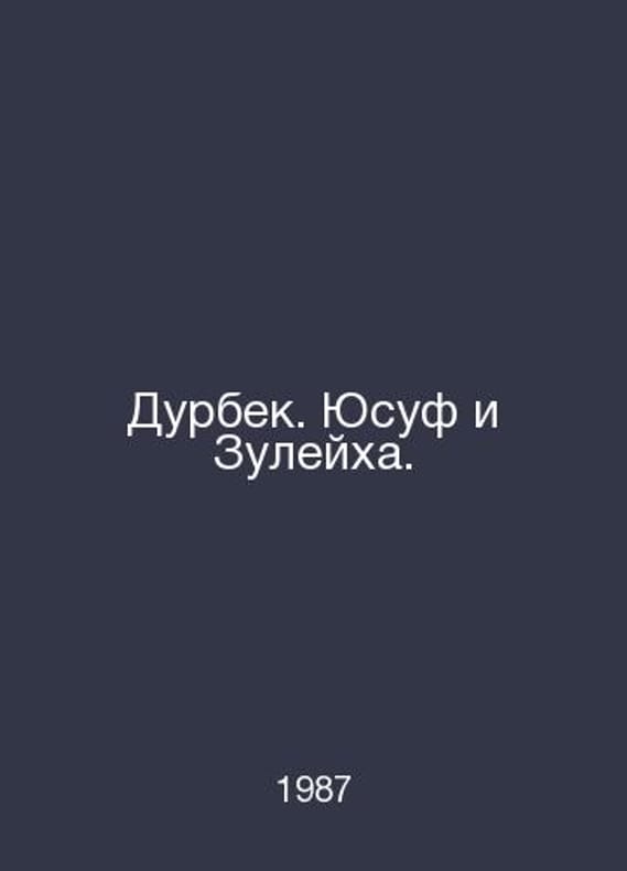 Durbek. Yusuf and Zulaikha. In Russian /Durbek. Yusuf i Zuleykha. M Worse. 1987.Contact us for details or to request photos of available books. Delivery of this book could take longer than normal due to additional handling time before shipping, and no rush delivery options are available. Please let us know if you have a specific date by which you need to receive your order.SKUalb5a477aee3cfabf25