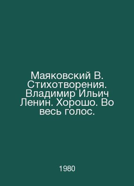 Mayakovsky V. Poems. Vladimir Ilyich Lenin. Good, aloud. In Russian /Mayakovskiy V. Stikhotvoreniya. Vladimir Ilich Lenin. Khorosho. Vo ves golos. Gift Edition in Three Books Stavropol Stavropol Book Publishing House 1980. Contact us for details or to request photos of available books. Delivery of this book could take longer than normal due to additional handling time before shipping, and no rush delivery options are available. Please let us know if you have a specific date by which you need to receive your order.SKUalb5adff4c2efa8718e
