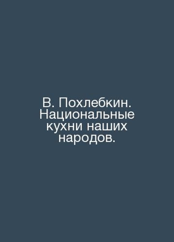 V. Pokhlebkin. National cuisines of our peoples. In Russian /V. Pokhlebkin. Natsionalnye kukhni nashikh narodov. Food industry. 304s..Contact us for details or to request photos of available books. Delivery of this book could take longer than normal due to additional handling time before shipping, and no rush delivery options are available. Please let us know if you have a specific date by which you need to receive your order. SKUalb5aee75ead8d7425e