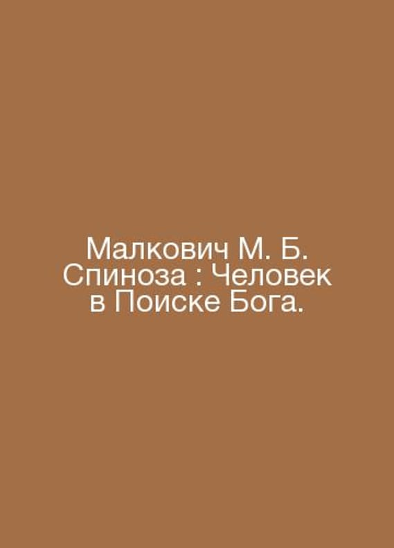 Malkovich M. B. Spinoza: Man in the Search for God. In Russian /Malkovich M. B. Spinoza: Chelovek v Poiske Boga. Roman Moscow: St. Petersburg Petroglyph: Center for Humanitarian Initiatives 2022, 258Contact us for details or to request photos of available books. Delivery of this book could take longer than normal due to additional handling time before shipping, and no rush delivery options are available. Please let us know if you have a specific date by which you need to receive your order.SKUalb5af1cea854ac78ad