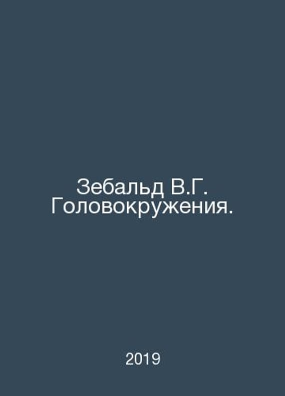 Zebald W.G. Dizziness. In Russian /Zebald V.G. Golovokruzheniya. Translated from German. M. New Editions. 2019..Contact us for details or to request photos of available books. Delivery of this book could take longer than normal due to additional handling time before shipping, and no rush delivery options are available. Please let us know if you have a specific date by which you need to receive your order. SKUalb5b0084535a64328d