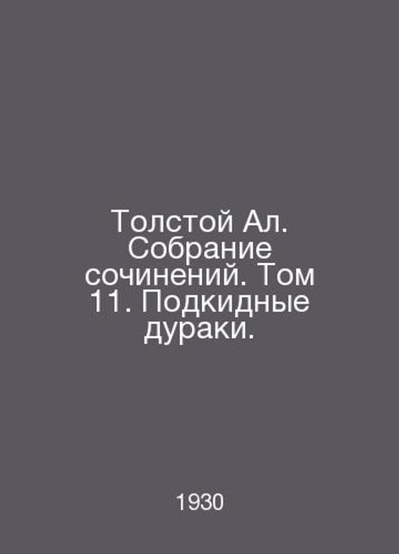 Tolstoy Al. A collection of works. Volume 11. Fools throw. In Russian /Tolstoy Al. Sobranie sochineniy. Tom 11. Podkidnye duraki. Stories. M. Nedra 1930.Contact us for details or to request photos of available books. Delivery of this book could take longer than normal due to additional handling time before shipping, and no rush delivery options are available. Please let us know if you have a specific date by which you need to receive your order.SKUalb5b5820bb75ab4a6c