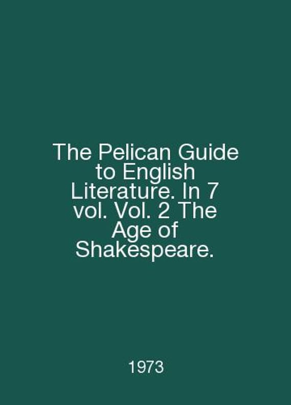 The Pelican Guide to English Literature. In 7 vol. Vol. 2 The Age of Shakespeare. In English /The Pelican Guide to English Literature. In 7 vol. Vol. 2 The Age of Shakespeare. Edited by Boris Ford. Harmondsworth. Pengiun Books. 1973.. Contact us for details or to request photos of available books. SKUalb5b82278d7f728f33.