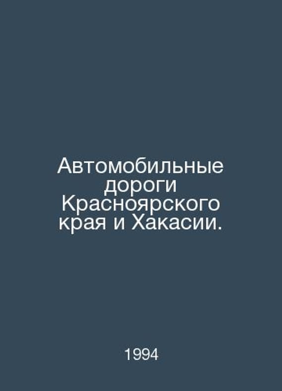 Roads of Krasnoyarsk Krai and Khakassia. In Russian /Avtomobilnye dorogi Krasnoyarskogo kraya i Khakasii. Krasnoyarsk 1994. Contact us for details or to request photos of available books. Delivery of this book could take longer than normal due to additional handling time before shipping, and no rush delivery options are available. Please let us know if you have a specific date by which you need to receive your order. SKUalb5b8b43fb653c21ec