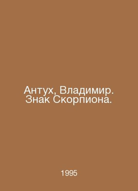Antukh, Vladimir. The sign of Scorpio. In Russian /Antukh, Vladimir. Znak Skorpiona. Poems. Predicted by A. Kazantsev. Illustration by L. Kolotova. Tomsk Image 1995.Contact us for details or to request photos of available books. Delivery of this book could take longer than normal due to additional handling time before shipping, and no rush delivery options are available. Please let us know if you have a specific date by which you need to receive your order.SKUalb5c5fce865e82da5d