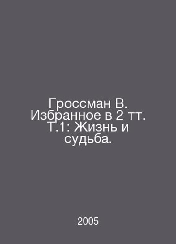 Grossman V. Favorites in 2 vol. T.1: Life and Fate. In Russian /Grossman V. Izbrannoe v 2 tt. T.1: Zhizn i sudba. Ekaterinburg. U-Factor. 2005.Contact us for details or to request photos of available books. Delivery of this book could take longer than normal due to additional handling time before shipping, and no rush delivery options are available. Please let us know if you have a specific date by which you need to receive your order.SKUalb5ca33c37050263ed