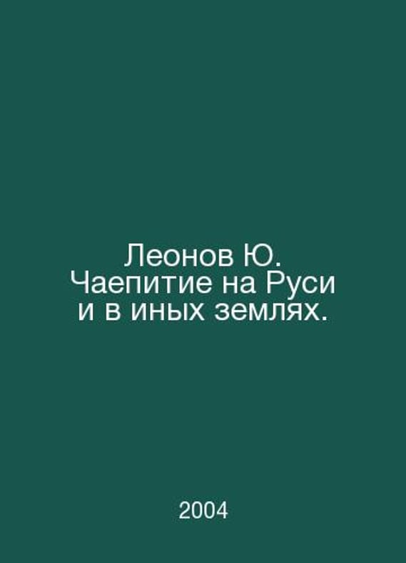 Leonov Yu Tea Party in Russia and Other Lands. In Russian /Leonov Yu. Chaepitie na Rusi i v inykh zemlyakh. M. Monolith 2004.. Contact us for details or to request photos of available books. SKUalb5cdcb22b5436bdeb.