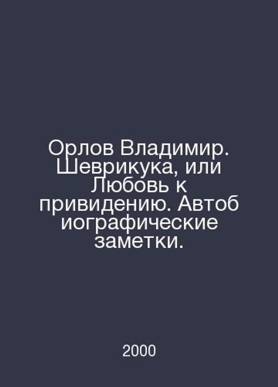 Orlov Vladimir. Shevrikuka, or Love for the Ghost. Autobiographical notes. In Russian /Orlov Vladimir. Shevrikuka, ili Lyubov k privideniyu. Avtobiograficheskie zametki. Series: Reflection. The 20th Century. Moscow, ACT. 2000.Contact us for details or to request photos of available books. Delivery of this book could take longer than normal due to additional handling time before shipping, and no rush delivery options are available. Please let us know if you have a specific date by which you need to receive your order.SKUalb5d4357ebb8b181e2
