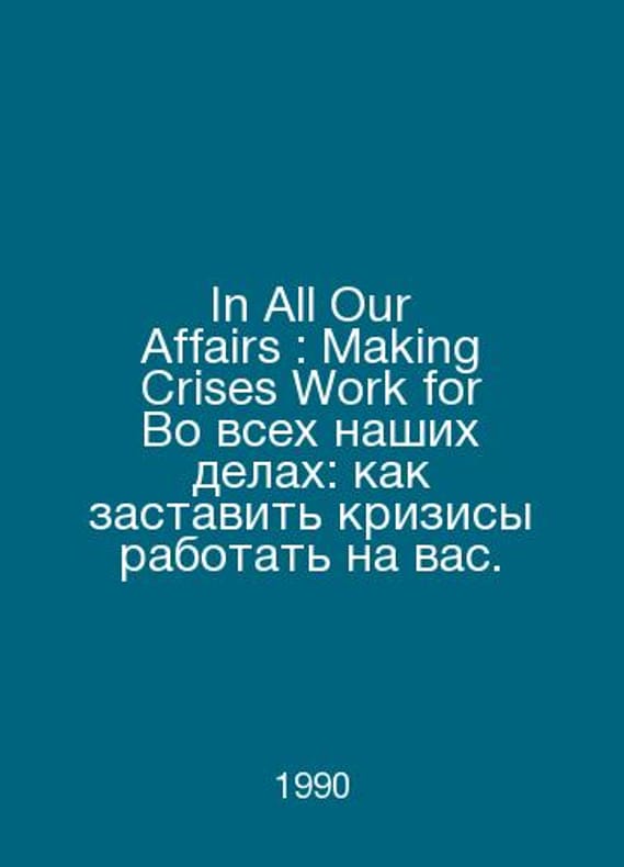 In All Our Affairs: Making Crises Work for All of Us: How to Make Crises Work for You. In English /In All Our Affairs: Making Crises Work for Vo vsekh nashikh delakh: kak zastavit krizisy rabotat na vas. Book in English. New York Al-Anon family group headquarters, INC. 1990.Contact us for details or to request photos of available books. Delivery of this book could take longer than normal due to additional handling time before shipping, and no rush delivery options are available. Please let us know if you have a specific date by which you need to receive your order.SKUalb5d5a9b1b69a8400a