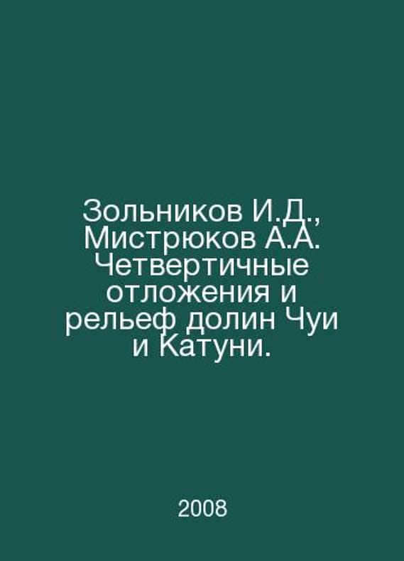 Zolnikov I.D., Mistryukov A.A. Quaternary sediments and the relief of the Chui and Katuni valleys. In Russian /Zolnikov I.D., Mistryukov A.A. Chetvertichnye otlozheniya i relef dolin Chui i Katuni. Novosibirsk Parallel 2008. Contact us for details or to request photos of available books. Delivery of this book could take longer than normal due to additional handling time before shipping, and no rush delivery options are available. Please let us know if you have a specific date by which you need to receive your order.SKUalb5db042191f3ac45c