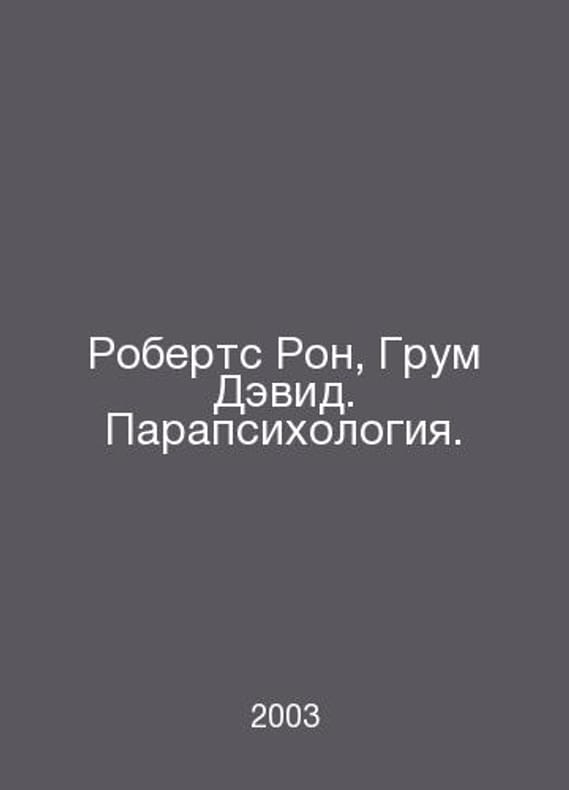 Roberts Ron, Groom David. Parapsychology. In Russian /Roberts Ron, Grum Devid. Parapsikhologiya. 2nd International Edition. Translated from English by S. Komarov. Series: Project Psychology: Best. S.Pb.prime-time EUROZNAC 2003. Contact us for details or to request photos of available books. Delivery of this book could take longer than normal due to additional handling time before shipping, and no rush delivery options are available. Please let us know if you have a specific date by which you need to receive your order. SKUalb5dc9d941f5c098ba