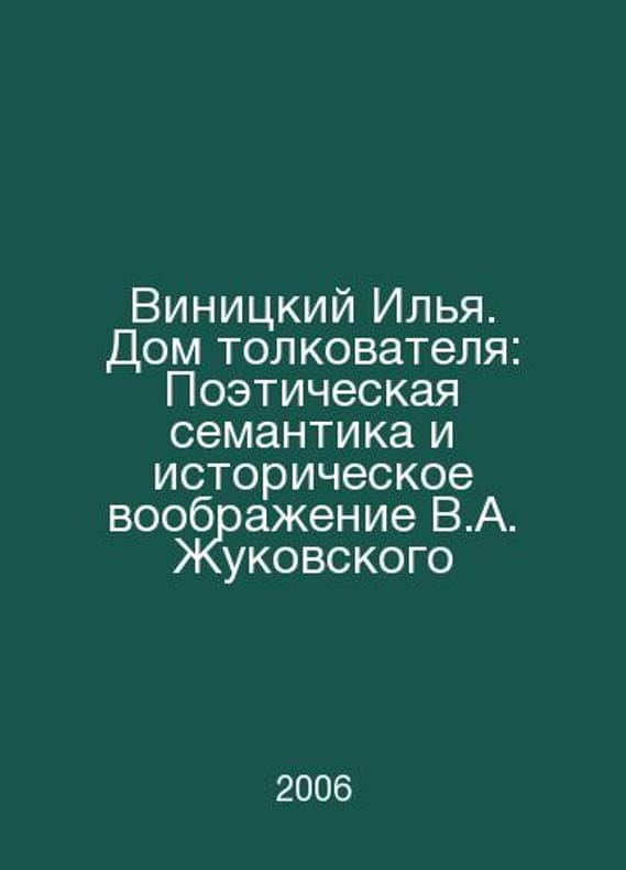 Vinitsky Ilya. The House of the Interpreter: Poetic Semantics and the Historical Imagination of V.A. Zhukovsky In Russian /Vinitskiy Ilya. Dom tolkovatelya: Poeticheskaya semantika i istoricheskoe voobrazhenie V.A. Zhukovskogo Series: M. Science Library The New Literary Review 2006. Contact us for details or to request photos of available books. Delivery of this book could take longer than normal due to additional handling time before shipping, and no rush delivery options are available. Please let us know if you have a specific date by which you need to receive your order. SKUalb5dd9f8a123332ed8