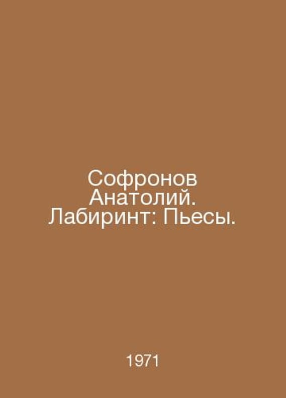 Sofronov Anatoly. Labyrinth: Plays. In Russian /Sofronov Anatoliy. Labirint: Pesy. Sofronov Anatoly. Labyrinth: Plays.Contact us for details or to request photos of available books. Delivery of this book could take longer than normal due to additional handling time before shipping, and no rush delivery options are available. Please let us know if you have a specific date by which you need to receive your order.SKUalb5dfd8bcf6ae6562e