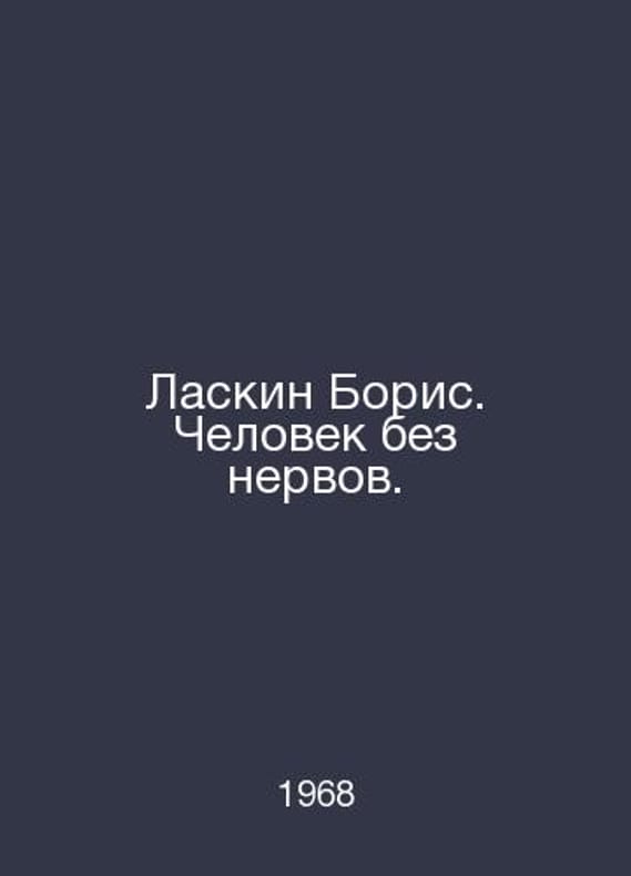 Laskin Boris. A man without nerves. In Russian /Laskin Boris. Chelovek bez nervov. Drawings by B. Savkov. Friendly cartoon by A. Tsvetkov. M.: Pravda, 1968.Contact us for details or to request photos of available books. Delivery of this book could take longer than normal due to additional handling time before shipping, and no rush delivery options are available. Please let us know if you have a specific date by which you need to receive your order.SKUalb5e4341e3f460c6b8