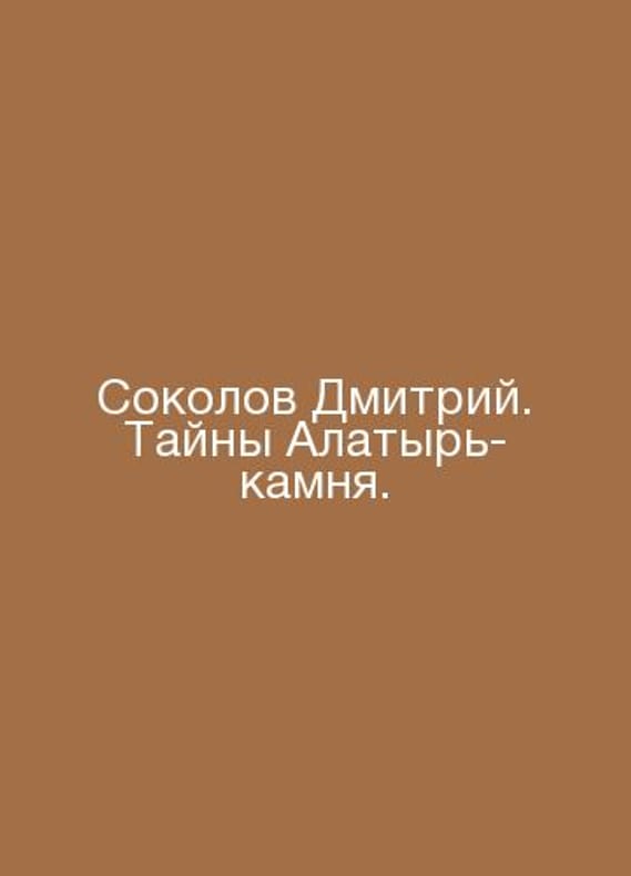 Dmitry Sokolov. The Mysteries of the Alatyr Stone. In Russian /Sokolov Dmitriy. Tayny Alatyr-kamnya. M White Alves 2016 272 pp.We have thousands of titles and often several copies of each title may be available. Please feel free to contact us for a detailed description of the copies available.SKUalb1e519b87e2d3dc23.