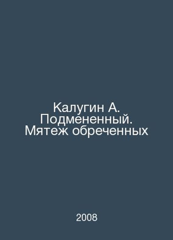 A. Kalugin Substituted. The Mutiny of the doomed In Russian /Kalugin A. Podmenennyy. Myatezh obrechennykh Series: Russian stars M. Eksmo 2008. Contact us for details or to request photos of available books. Delivery of this book could take longer than normal due to additional handling time before shipping, and no rush delivery options are available. Please let us know if you have a specific date by which you need to receive your order.SKUalb5e84cf7b962705e3