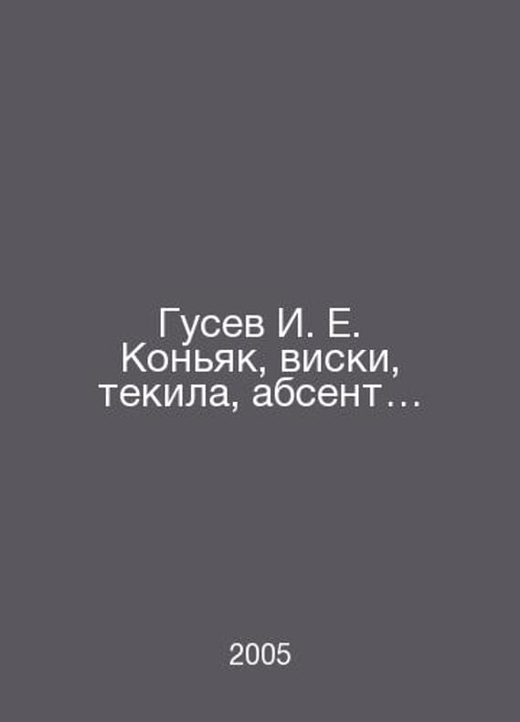 Gusev I. E. Cognac, whiskey, tequila, absinthe. In Russian /Gusev I. E. Konyak, viski, tekila, absent M. ACT: Harvest 2005.. Contact us for details or to request photos of available books. SKUalb5eeff43b62a8069e.