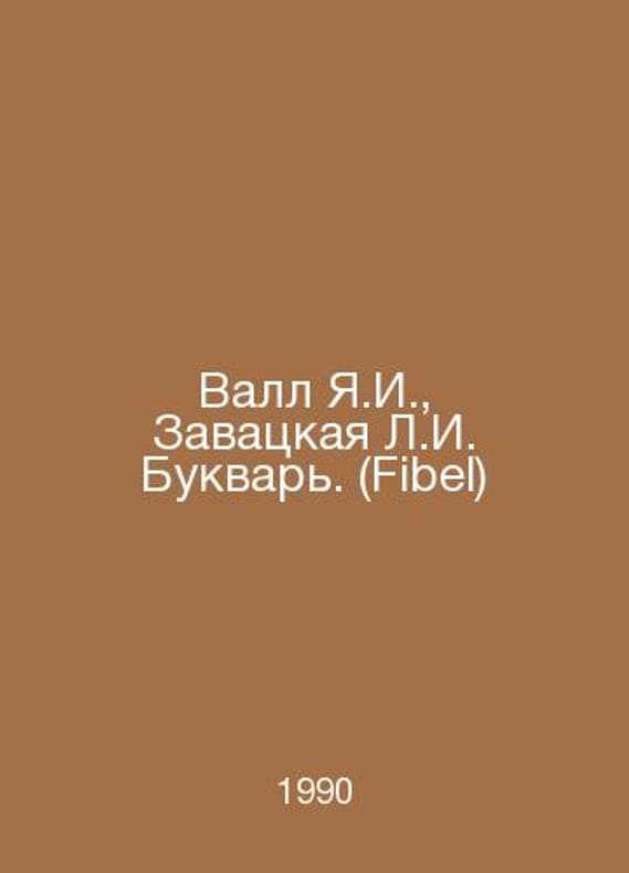 Wall Y.I., Zavatskaya L.I. Bukvar. (Fibel) In Russian /Vall Ya.I., Zavatskaya L.I. Bukvar. (Fibel) 10th edition in German, Enlightenment. 1990.. Contact us for details or to request photos of available books. SKUalb5f2c9aa0fba170f0.