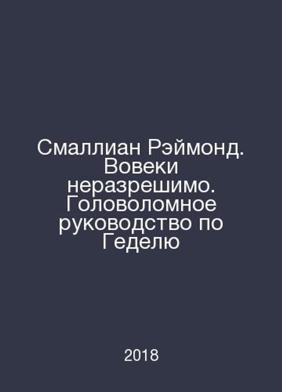 Smallian Raymond. Forever Insoluble. Gedels Puzzle Guide In Russian /Smallian Reymond. Voveki nerazreshimo. Golovolomnoe rukovodstvo po Gedelyu Translated from English by M. Laurie 2018.Contact us for details or to request photos of available books. Delivery of this book could take longer than normal due to additional handling time before shipping, and no rush delivery options are available. Please let us know if you have a specific date by which you need to receive your order.SKUalb5f7752e0509c1bf6