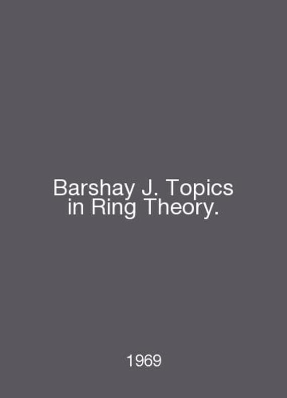 Barshay J. Topics in Ring Theory. In English /Barshay J. Topics in Ring Theory. New York, Benjamin, 1969.Contact us for details or to request photos of available books. Delivery of this book could take longer than normal due to additional handling time before shipping, and no rush delivery options are available. Please let us know if you have a specific date by which you need to receive your order.SKUalb60109611c6c25de4