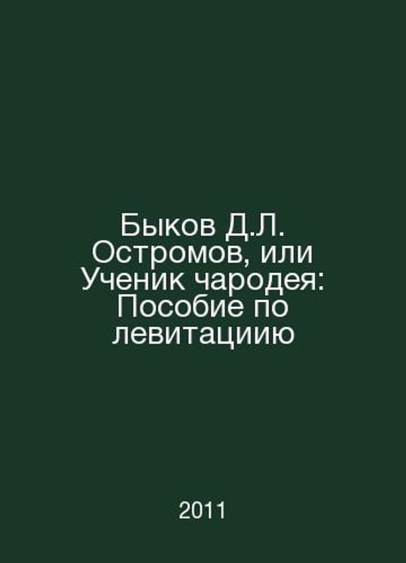 D.L. Ostromovs Bull, or The Sorcerers Disciple: A Guide to Levitation In Russian /Bykov D.L. Ostromov, ili Uchenik charodeya: Posobie po levitatsiiyu M. PROZAIK 2011.Contact us for details or to request photos of available books. Delivery of this book could take longer than normal due to additional handling time before shipping, and no rush delivery options are available. Please let us know if you have a specific date by which you need to receive your order.SKUalb60869c93a51bd525
