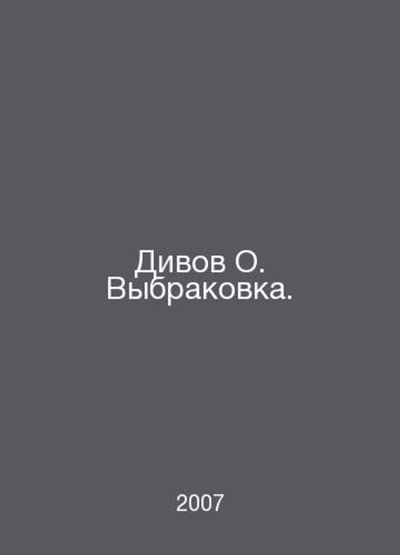 Diva O. Selection. In Russian /Divov O. Vybrakovka. M Exmo 2007. Contact us for details or to request photos of available books. Delivery of this book could take longer than normal due to additional handling time before shipping, and no rush delivery options are available. Please let us know if you have a specific date by which you need to receive your order.SKUalb60c1b36242a45d3b