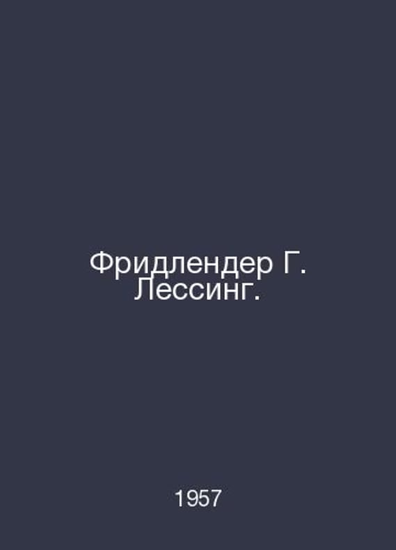 Friedlander G. Lessing. In Russian /Fridlender G. Lessing. Leningrad Gopolitizdat 1957.Contact us for details or to request photos of available books. Delivery of this book could take longer than normal due to additional handling time before shipping, and no rush delivery options are available. Please let us know if you have a specific date by which you need to receive your order.SKUalb611a50508482c805