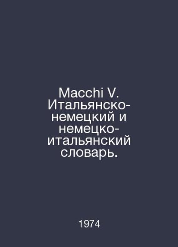 Macchi V. Italian-German and German-Italian Dictionary. In Russian /Macchi V. Italyansko-nemetskiy i nemetsko-italyanskiy slovar. Leipzig 1974.. Contact us for details or to request photos of available books. SKUalb6172acb66d1777b6.